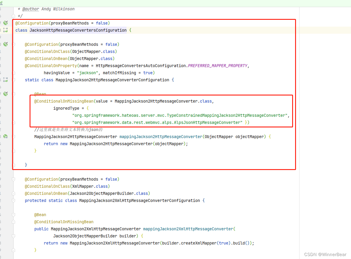 在HttpMessageConvertersAutoConfiguration的自动配置类中,引入了我们的jackjson,Jsonb,Gson的序列化类