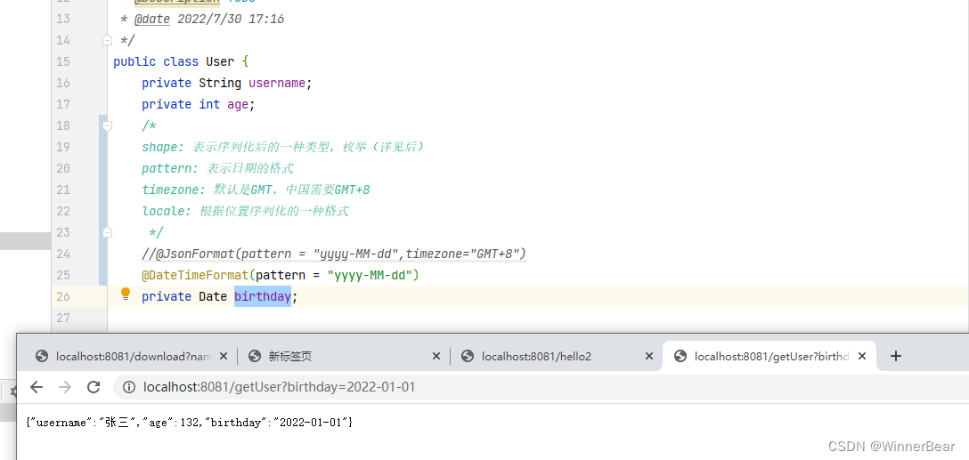 3、@JsonFormat(pattern = "yyyy-MM-dd")