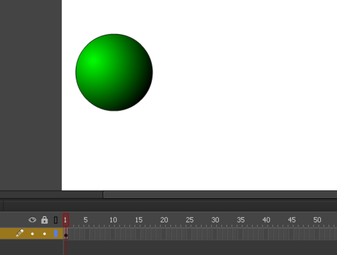 (1)打开 Flash,第一帧默认为空白关键帧,在画布上绘制一个圆后,空白关键帧转换成关键帧,第一帧也有空心小圆点变成了实心小圆点。