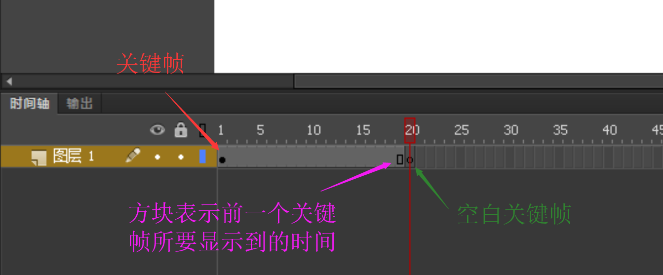 - 空白关键帧:无图像的关键帧,用空心小圆点表示。