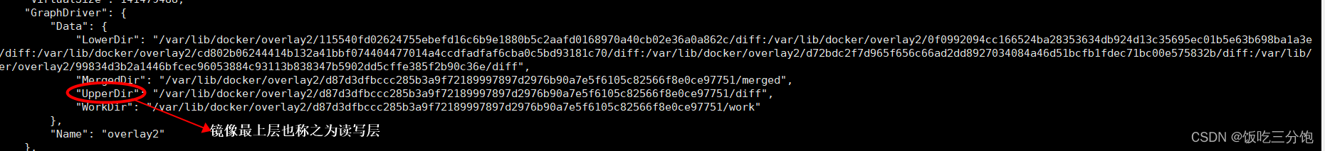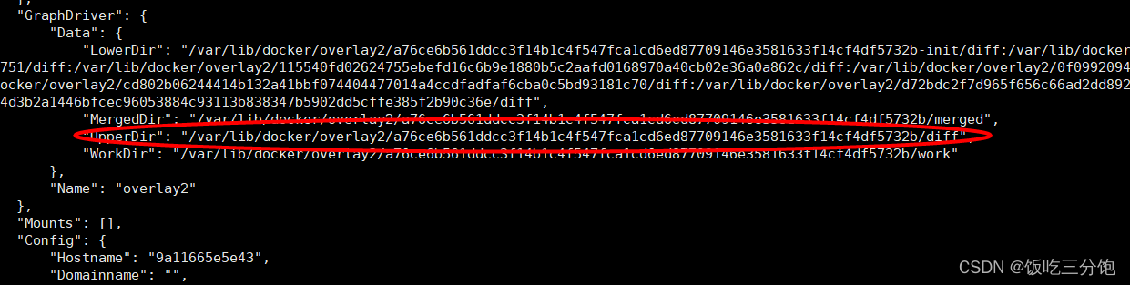 2. 执行:docker inspect 9a11665e5e43,查看容器upperDir路径