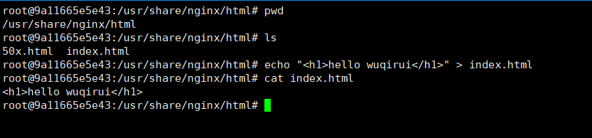 docker run -d --name=nginx -v /wuqirui/nginx:usr/share/nginx/html nginx