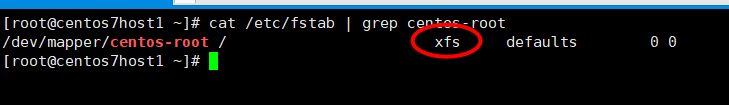 确认文件系统是xfs: cat /etc/fstab | grep centos-root