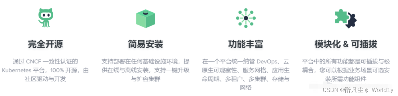 2、KubeSphere整体来说是一个能够灵活组合云原生应用的一个平台,在这个平台里,可以把其它云原生应用当成个插件来使用,比如:DevOps中的:Jenkins,也集成了Service mesh的应用,比如:Istio。这也就是所说的即插即用,这对于运维人员行。