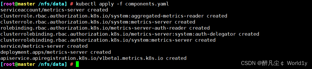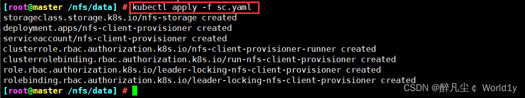 以上就是我们配置默认存储所执行的步骤:创建StorageClass资源,创建ServiceAccount资源,创建deployment资源,创建ClusterRole,ClusterRoleBinding,Role,RoleBinding等权限资源。