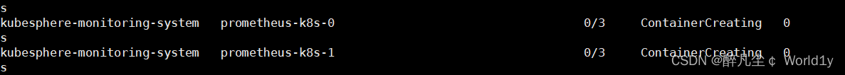 kubesphere-monitoring-system prometheus-k8s-1 0/3 ContainerCreating 0 9m39s