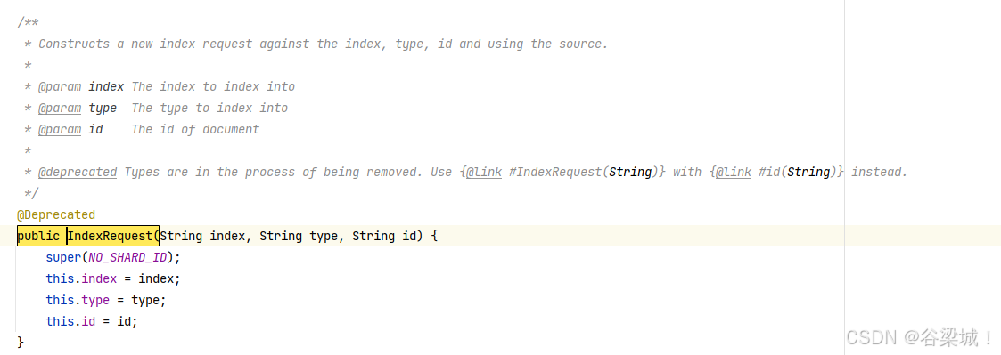 我们ES最近升级,从7.x升到了8.x,8.x不支持索引上加type了,这个代码应该是过去的老代码,然后看了一下过期的方法注释
