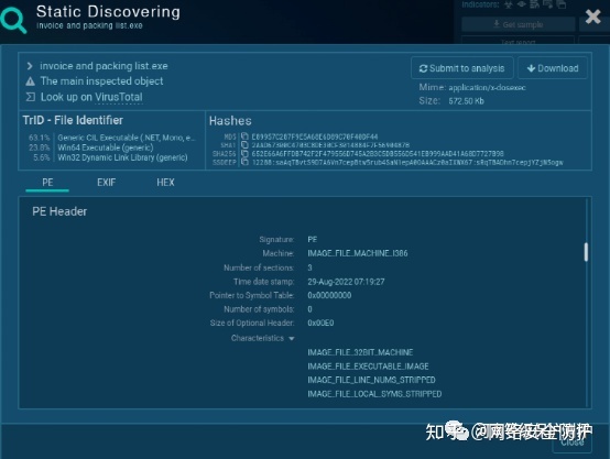这是静态恶意软件分析的阶段。在不运行的情况下检查可执行文件:检查字符串以了解恶意软件的功能。哈希、字符串和标头的内容将提供恶意软件意图的概述。
