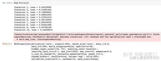 导入数据,一次训练模型,采用训练集数据训练MLP分类器模型
