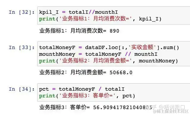 月均消费金额的业务定义计算方式是:月均消费金额 = 总消费金额 / 月份数;客单价业务定义计算方式是:客单价 = 总消费金额 / 总消费次数。等等