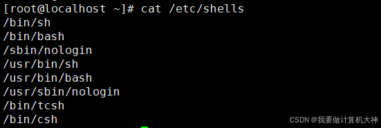 常见的 Shell 解释器程序有很多种,使用不同的 Shell 时,其内部指令、命令行提示符等方面会存在一些区别。通过/etc/shells 文件可以了解当前系统所支持的 Shell 脚本种类。