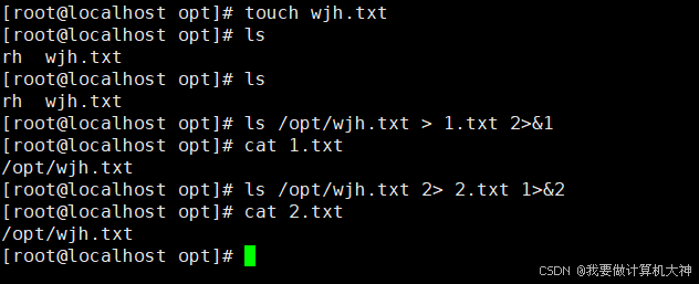 错误重定向指的是将执行命令过程中出现的错误信息(如选项或参数错误等)保存到指 定的文件,而不是直接显示在屏幕上。错误重定向使用“2>”操作符