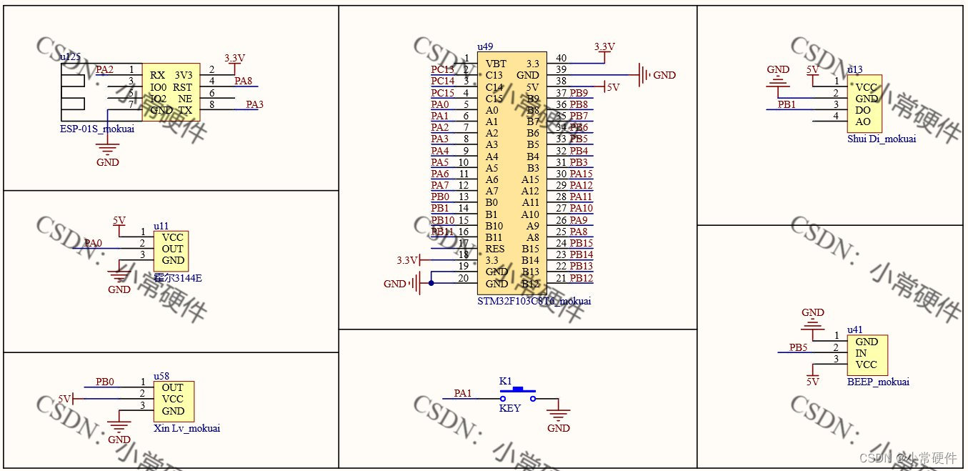 1. 通过STM32F103C8T6单片机作为系统主控,最小系统电路是整个电路的核心;
