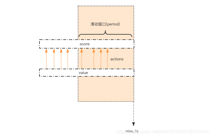 * 思想:zadd(用户id+行为)作为key的多个值,使用(zremrangebysecore key 0 当前时间-时间窗口长度 )来除去时间窗口外的记录