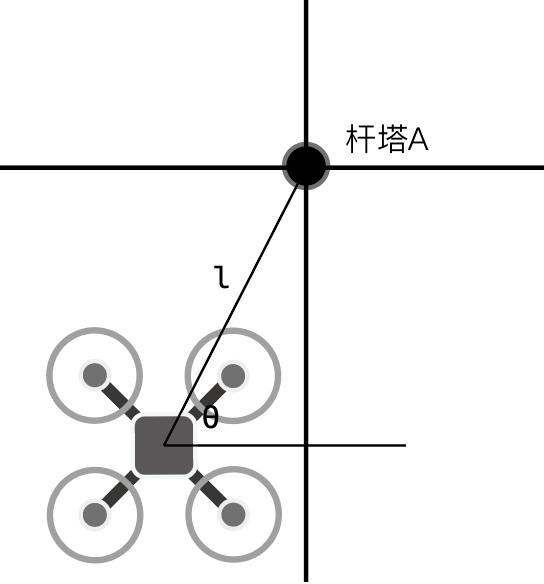 2.飞行器检测周围的杆塔,确定杆塔A方位和距离,然后到达杆塔A的前方。这里用到了检测杆塔和水平运动状态调整的功能