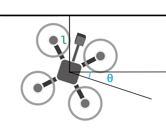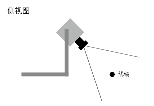 上面的图已经画得很清楚了,对于定高性能较好的飞行器来说 h 是已知常量,摄像头安装的朝向(绿线)角度也是已知的。首先可以通过画面中线中心的纵坐标y和摄像头的纵向可视角度获取一个近似的线缆相对于摄像头的方位角,然后再与摄像头的安装角度相加即可得出 θ 。已知θ和h,则l可以直接通过tan函数求出。当然还需要考虑到飞行器的Pitch角,飞行器在面朝线缆前后仰时,其Pitch角变化,导致摄像头的安装角度变化,为了消除这种影响,需要获取飞行器的Pitch角并对θ进行补偿,更进一步的,还需要对摄像头的 h 进行补偿,最终得到比较精准的距离数据。