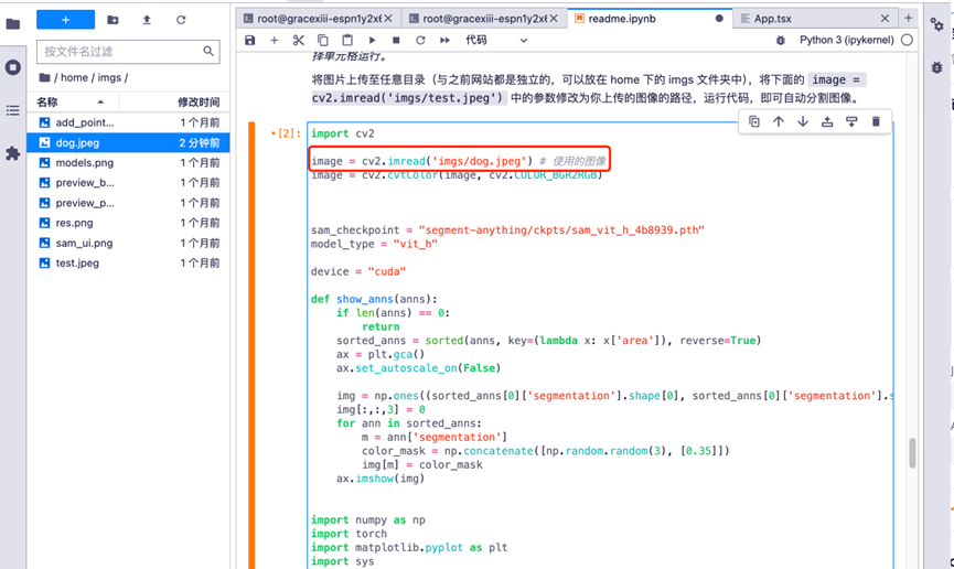 在 notebook 中提供了一个自动分割的方法,它可以自动处理图片。