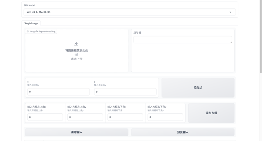 运行起来后,我们通过 API 访问,就可以进入这个可交互网站了,它会根据鼠标的位置分割对应的图片。