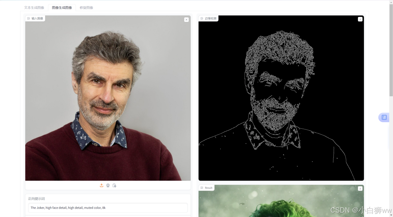 正向提示词:The Joker, high face detail, high detail, muted color, 8k