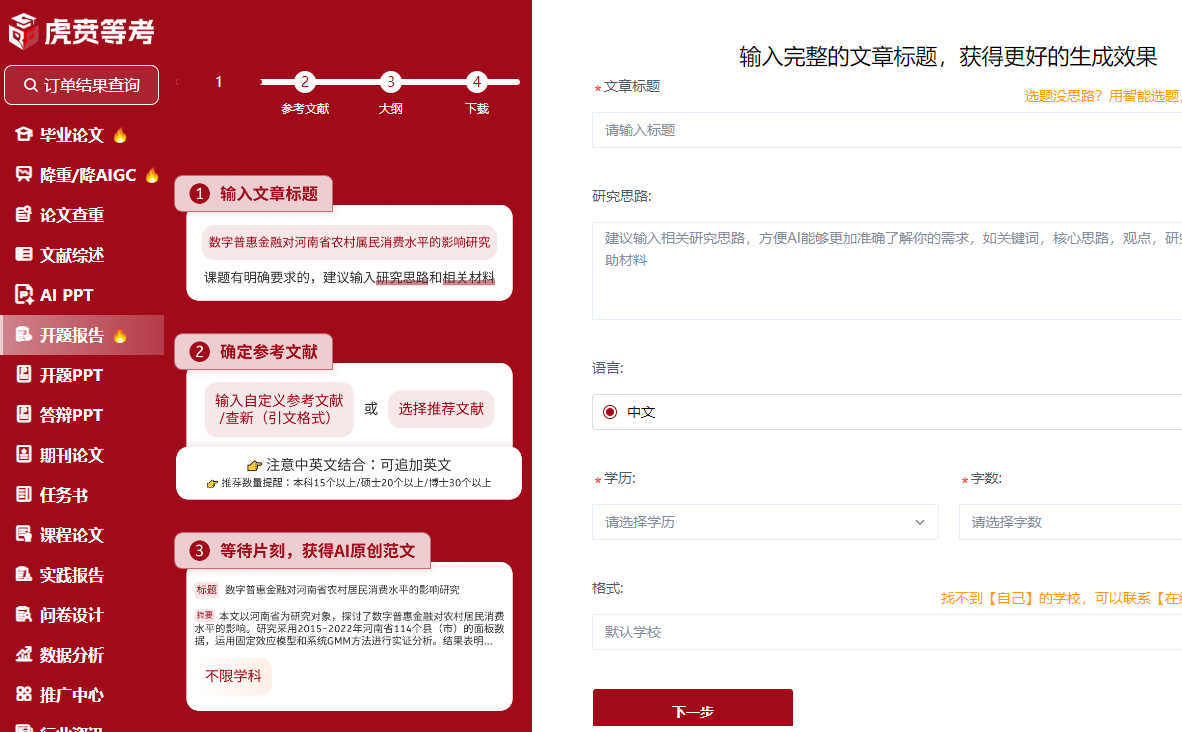 二、虎贲等考 AI:3 步搞定高质量开题报告,告别 “假大空” ✅