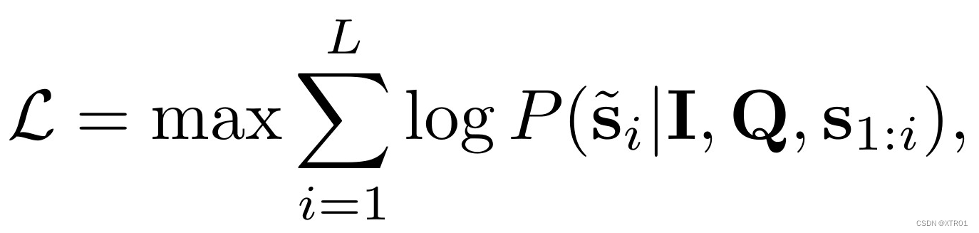 其中I是输入图像,Q是问题序列,s~是输出序列,s是输入序列, L是输出序列的长度。