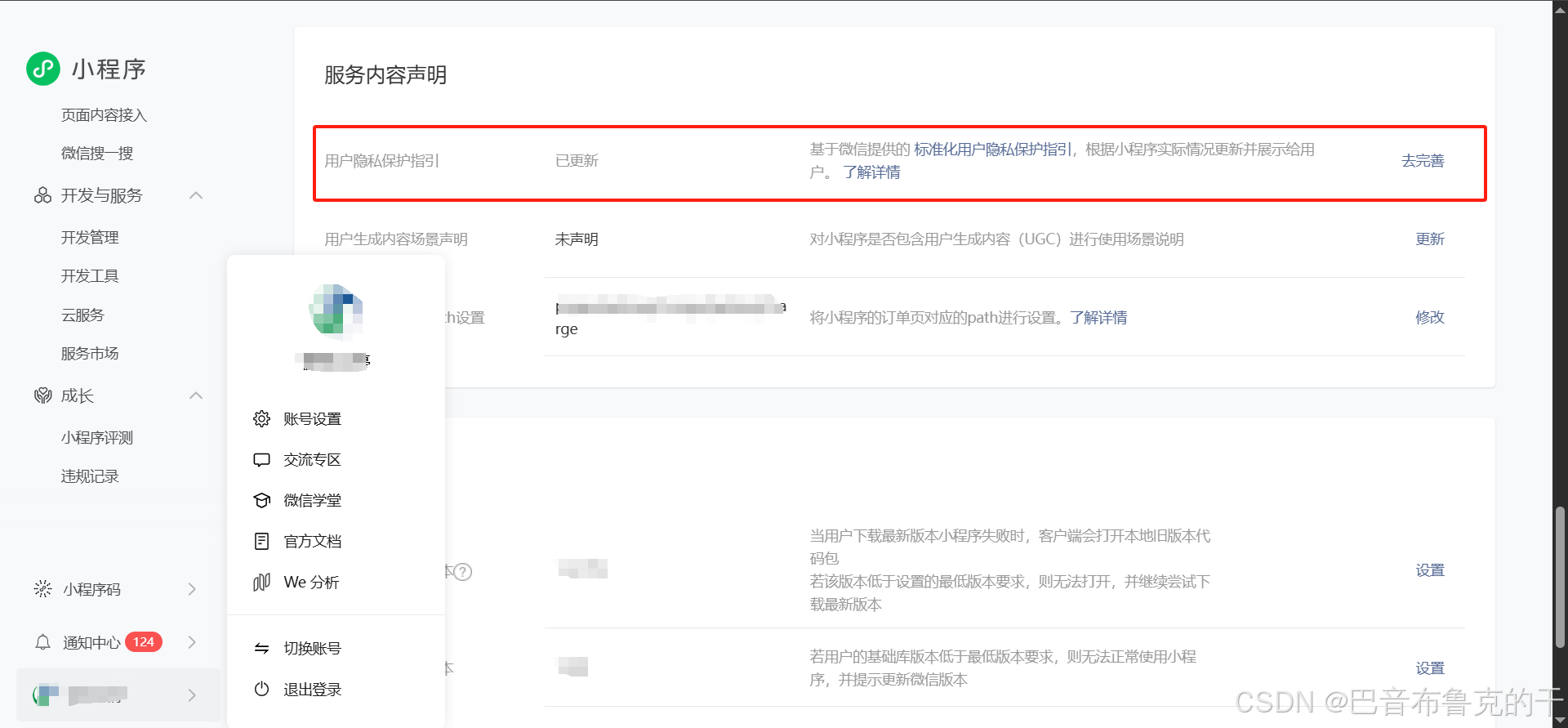 1、首先要去微信公众平台里面的隐私协议里面完善“用户隐私保护指引”