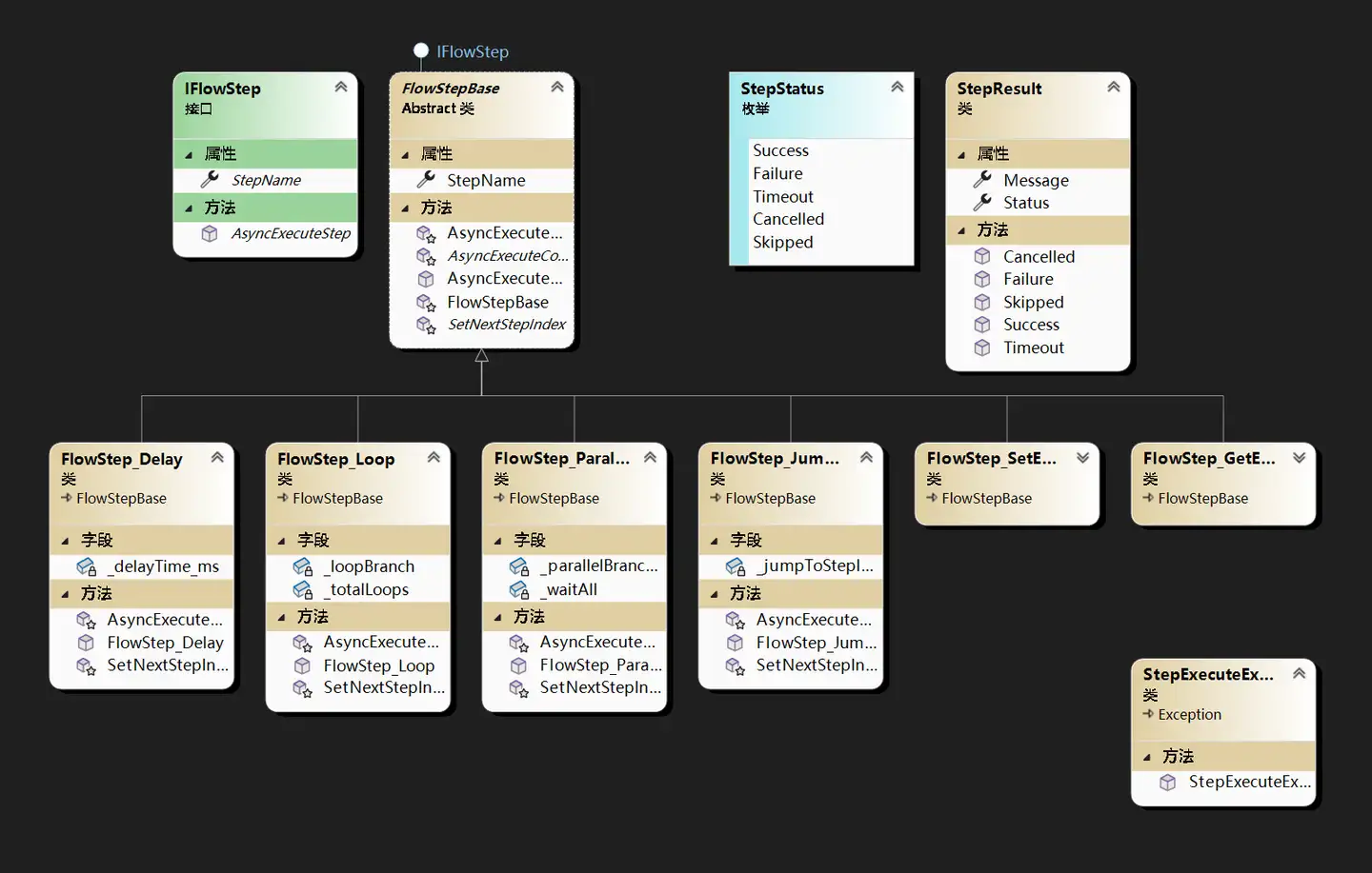本文将进一步深入,重点介绍流程执行的核心单元 —— 单步流程步骤(FlowStep)的接口设计、基类封装及典型实现方式(如延时、跳转、循环、并行等)。