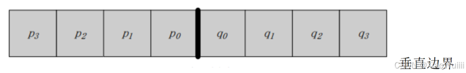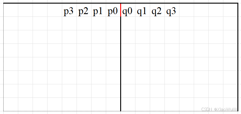 例如下图,左右两个8*8的块,第一个8*8块正在做第一条垂直边界的垂直滤波(红线),用到了左右4个像素点。