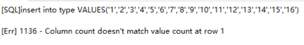 Mysql 错误[Err] 1136 - Column count doesn‘t match value count at row 1 是由于语句中,插入的列数多于或少于表格的列数造成的把前后列数修改相等即可: