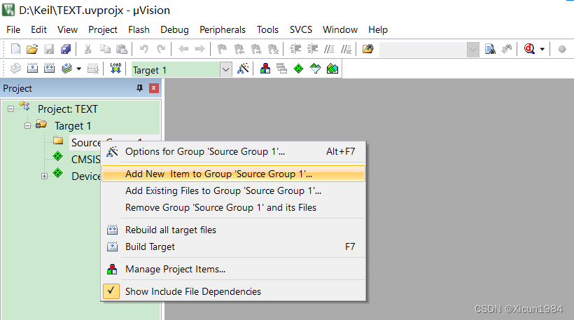 右击 Source Group 1 ,点击 Add New Item to Group ‘Source Group 1’…