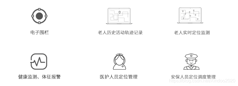 通过在养老院内部全场部署蓝牙定位网关(又叫蓝牙探针)。可以提供养老院整体位置定位服务,养老院人员实时定位监测管理,老人活动历史轨迹回放,电子围栏/区域告警,应急呼救,健康信息监测、体征报警等功能。为护理人员迅速准确地找到老人提供位置定位上的帮助。丰富的BLE终端(见下图)。除此之外,蓝牙系统具备强大的扩展能力,可以随时根据客户需求接入各类其他BLE设备.
