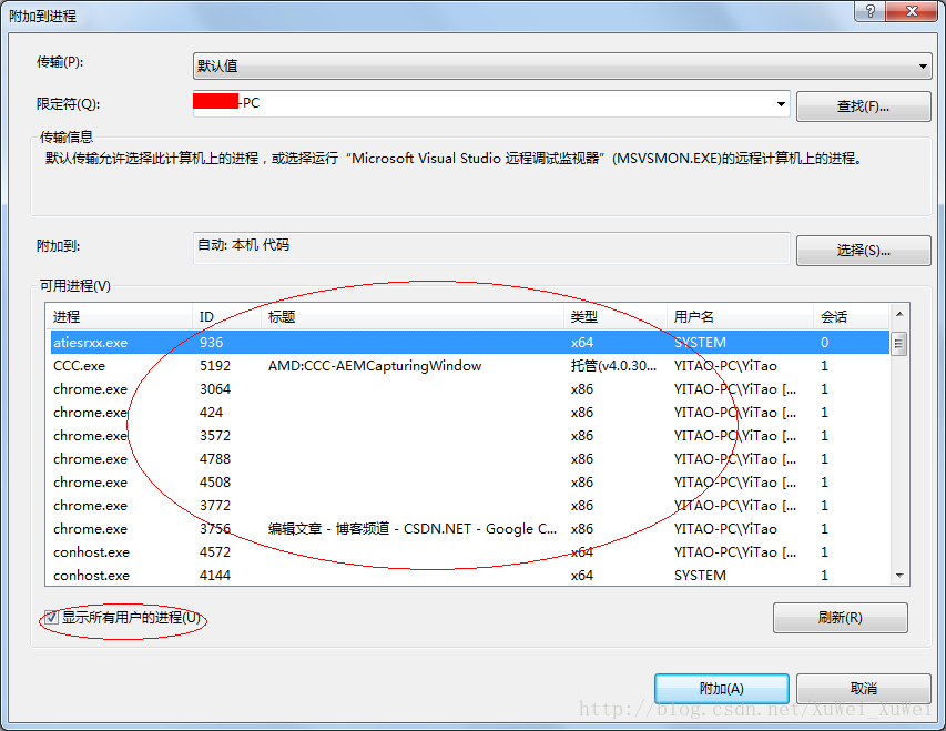 7、在vs中把刚才的服务所在的进程附加进去即可,在附加窗口中找到hyperconverthttpservice,确认即进入调试状态,当执行到你设置的断点处,就会停住,开始调试