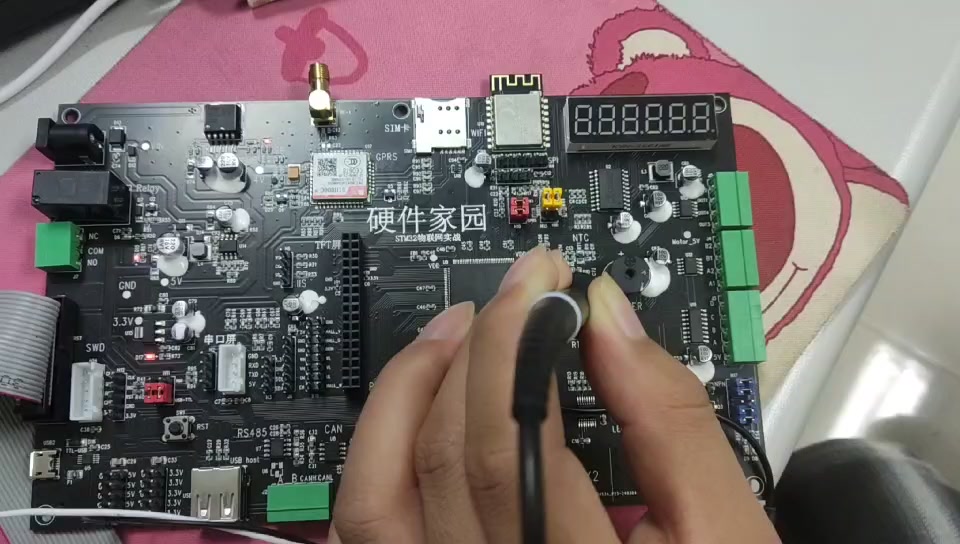 学习硬件测试08:WIFI 无线通信+GPRS 无线通信(P99、P104) 这一部分在实战电路板上的位置如下图。不仅会使用到无线模块,还会配合使用继电器、温湿度传感器、LED 灯、按键、蜂鸣器、 NPN 输出和串口打印。