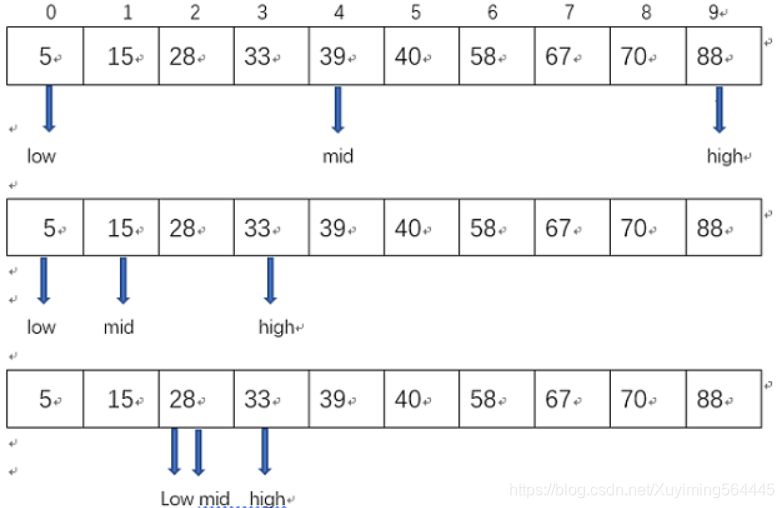 while (low <= high) {