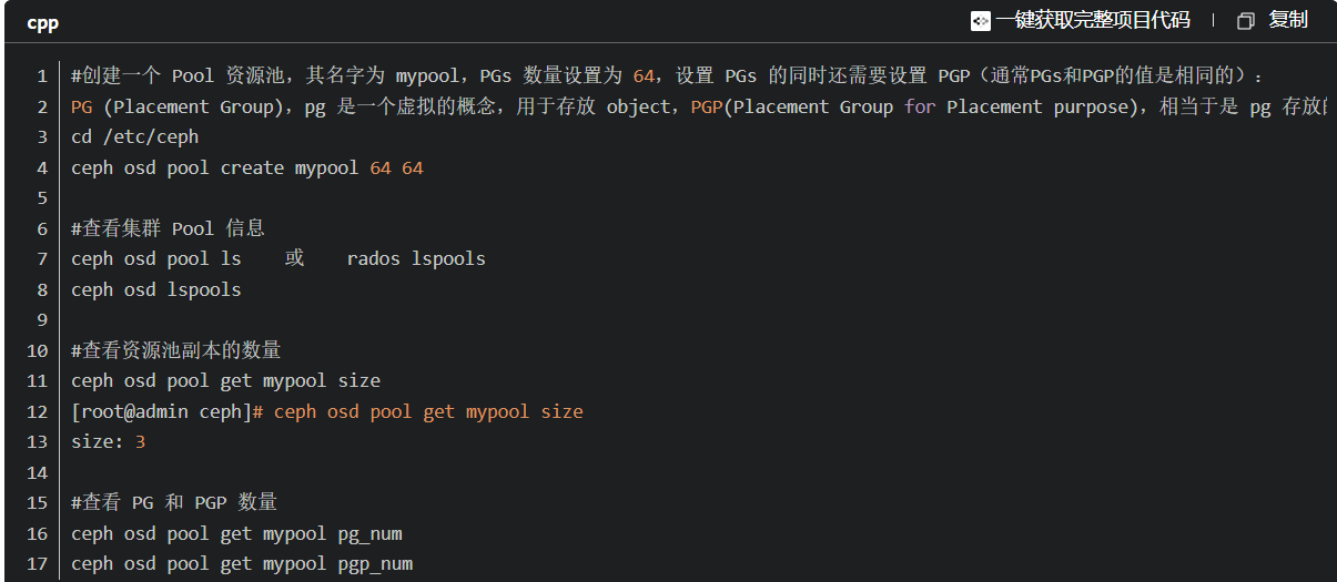 首先我们需要在 Ceph 中定义一个 Pool 资源池。Pool 是 Ceph 中存储 Object 对象抽象概念。
