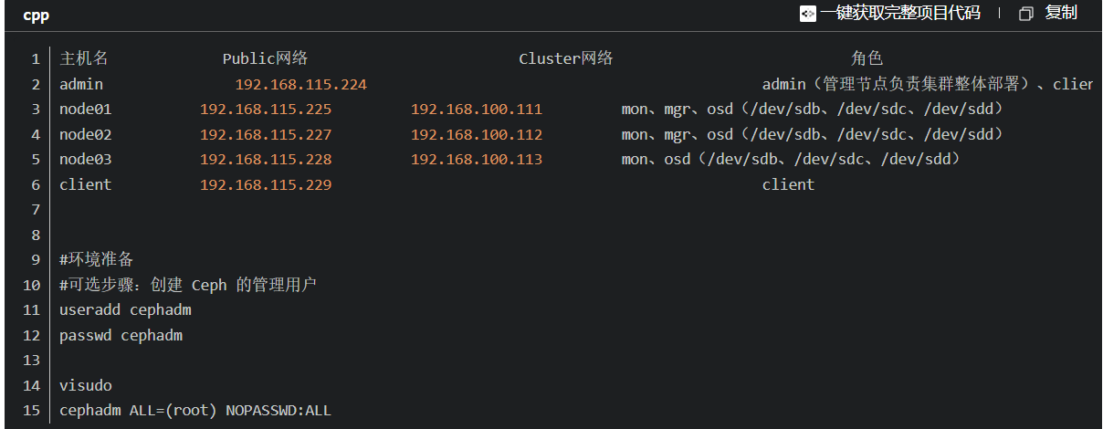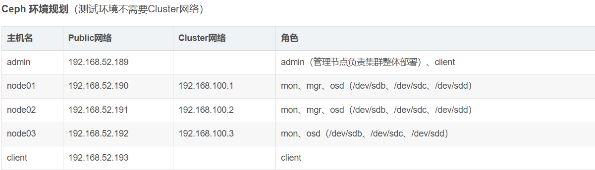 Ceph 环境规划(测试环境不需要Cluster网络)