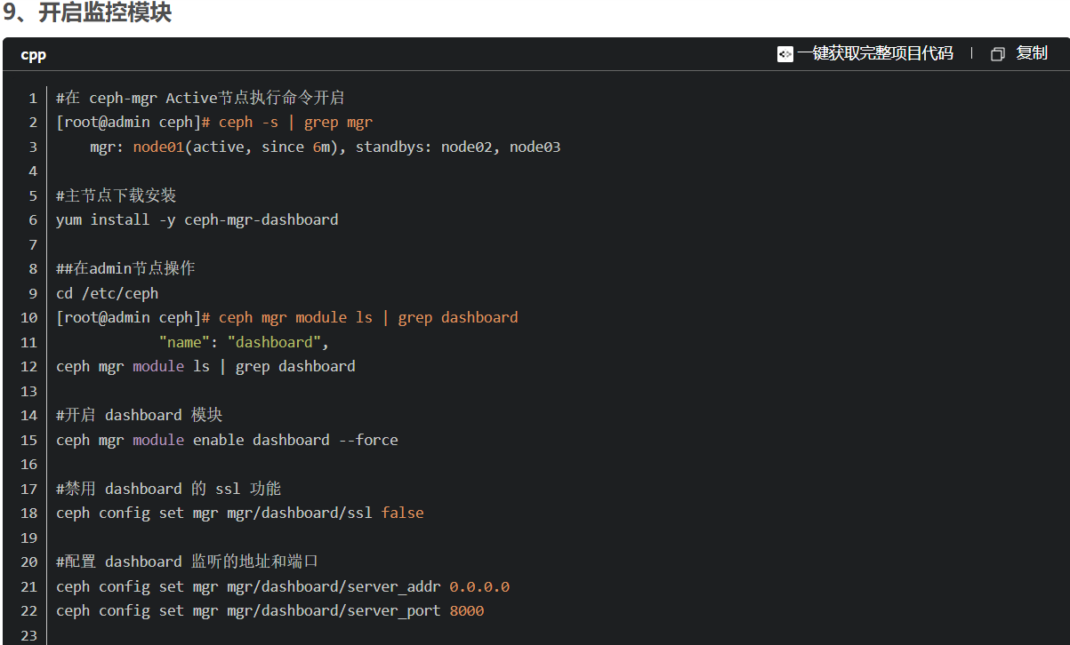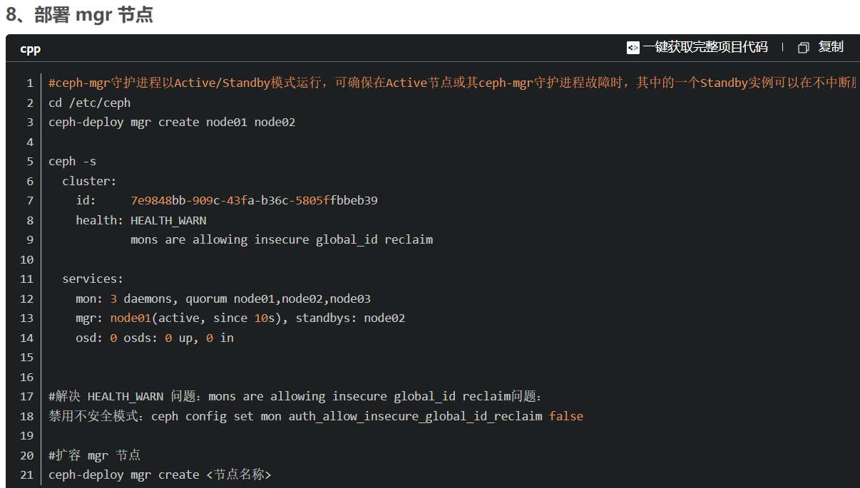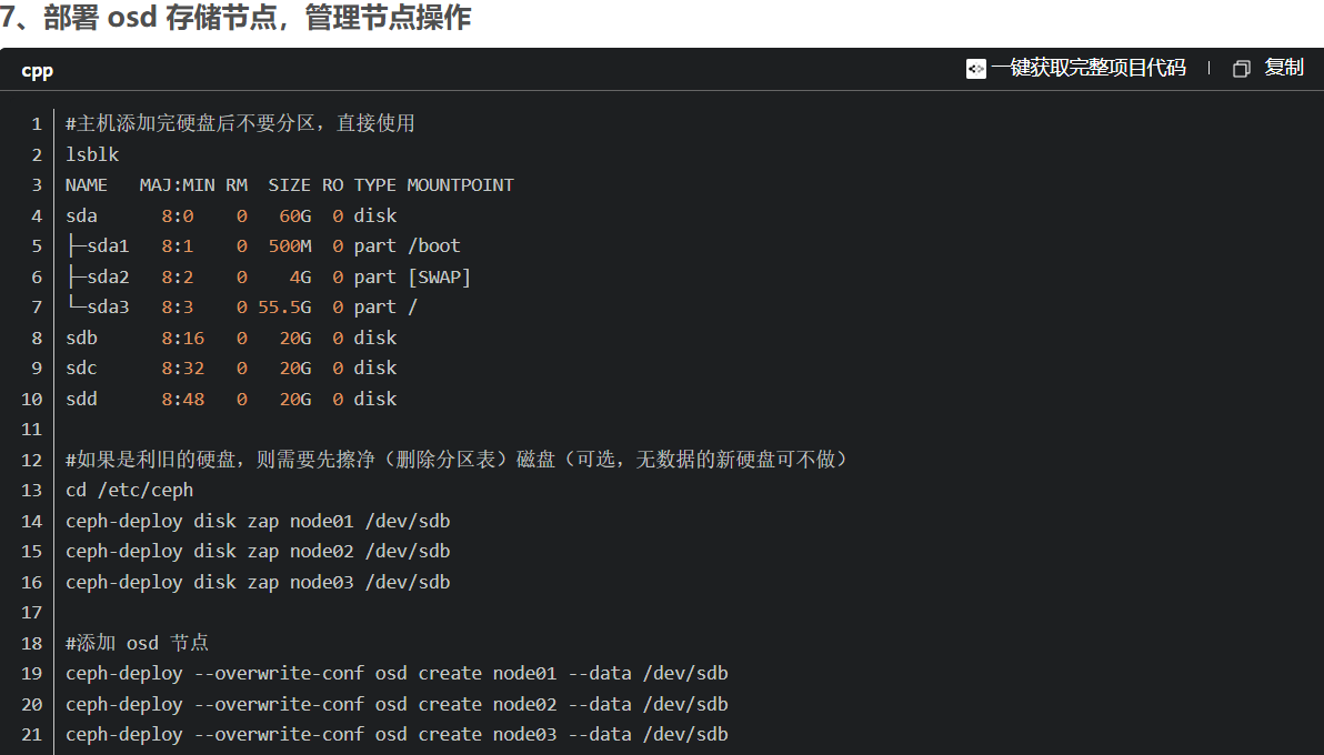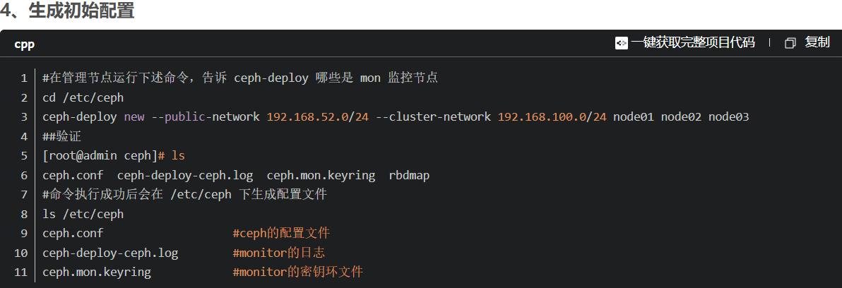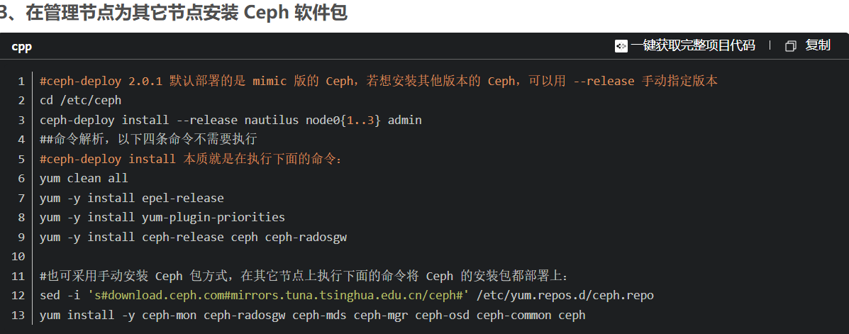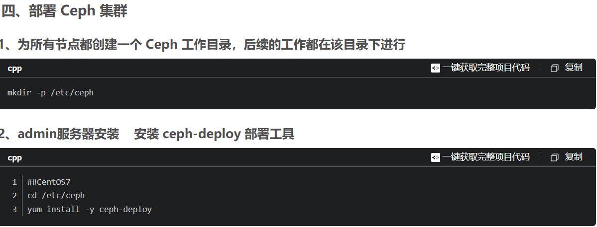 手动部署,一步步部署 Ceph 集群,支持较多定制化和了解部署细节,安装难度较大。