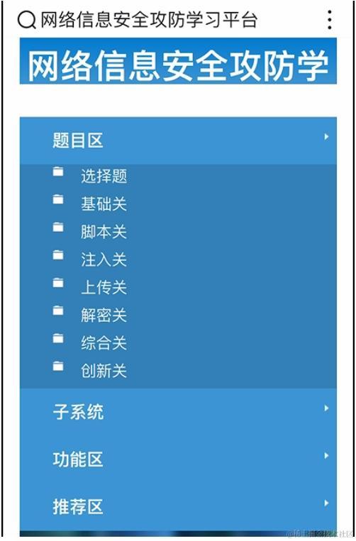 提供基础知识考查、漏洞实战演练、教程等资料。实战演练以Web题为主,包含基础关、脚本关、注入关、上传关、解密关、综合关等。