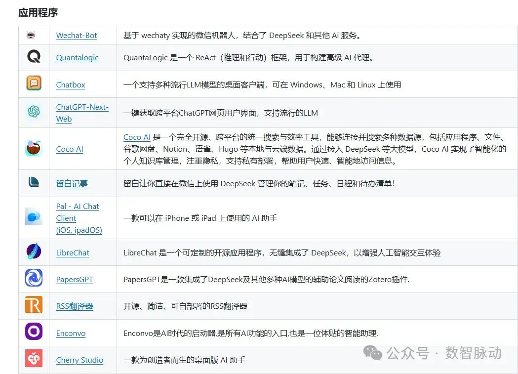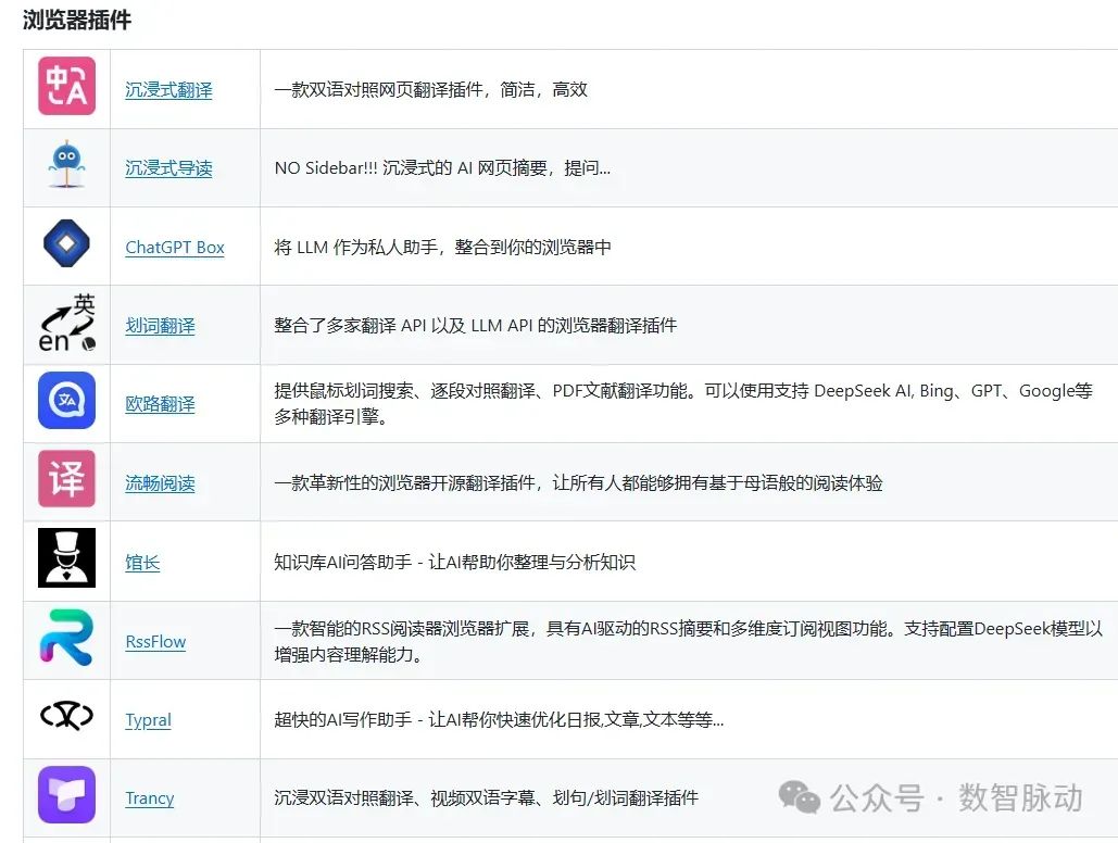 DeepSeek 大模型可以接入到哪些应用?DeepSeek 的 Github 项目 Awesome DeepSeek Integration(https://github.com/deepseek-ai/awesome-deepseek-integration/)绝对不容错过!该项目提供了丰富的工具和资源清单,包括桌面应用、浏览器扩展、开发工具等,涵盖了从个人知识管理到代码审核、从视频字幕生成到 AI 写作助手的广泛场景,旨在帮助用户更好地利用 DeepSeek 的功能。目前该项目已有 16.3 K star,可收藏关注。