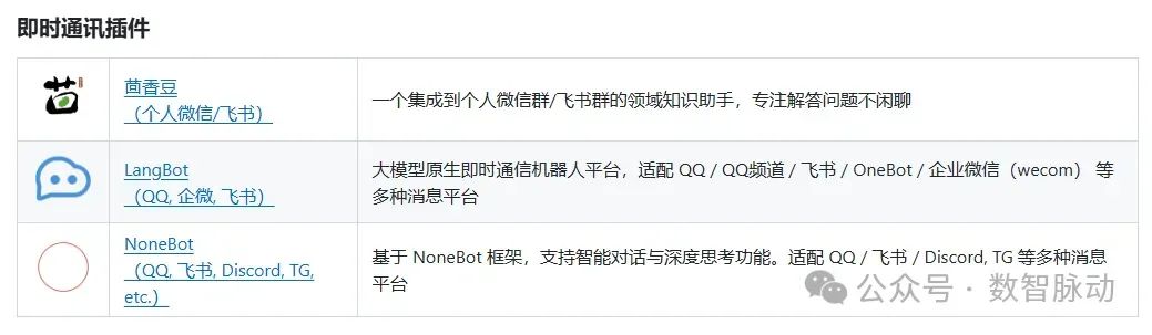 大模型原生即时通信机器人平台,适配 QQ / QQ频道 / 飞书 / OneBot / 企业微信(wecom)等多种消息平台。 - • NoneBot