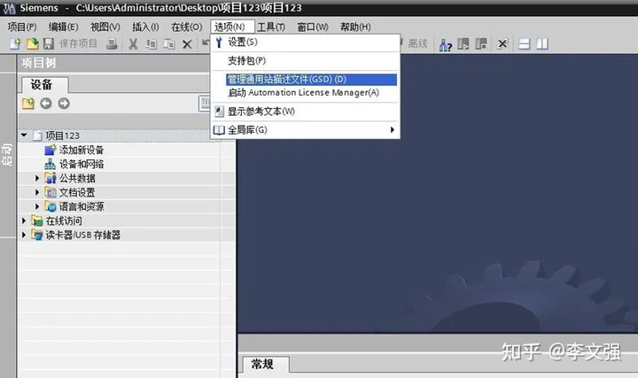 ● MODBUS 做为主站或从站时,使用不同的 GSD 文件。在西门子编程软件中进行操作