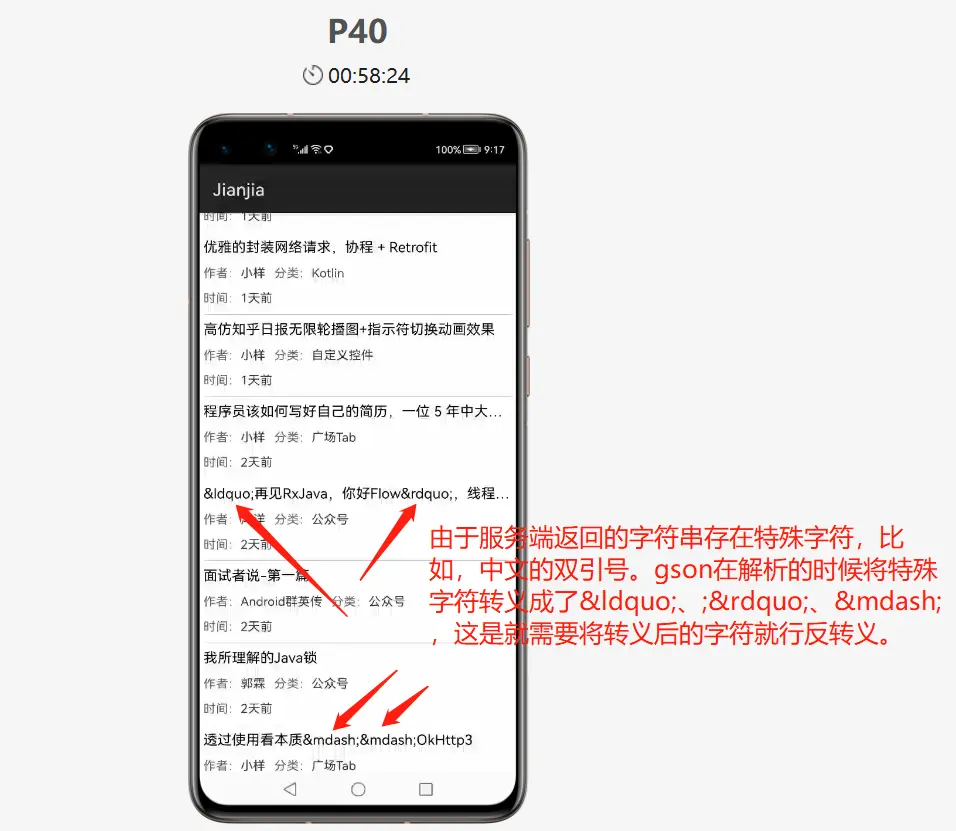 调用StringEscapeUtils的unescapeHtml方法,如果字符串中没有转义字符,unescapeHtml方法 会直接返回原字符串,否则会对字符串进行反转义。具体的代码可查看示例代码中的HomeArticleProvider类。