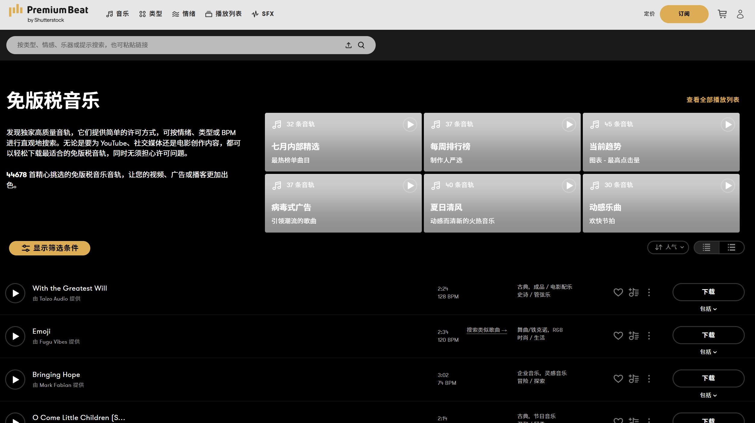 PremiumBeathttps://www.premiumbeat.com/zh/royalty-free-music
