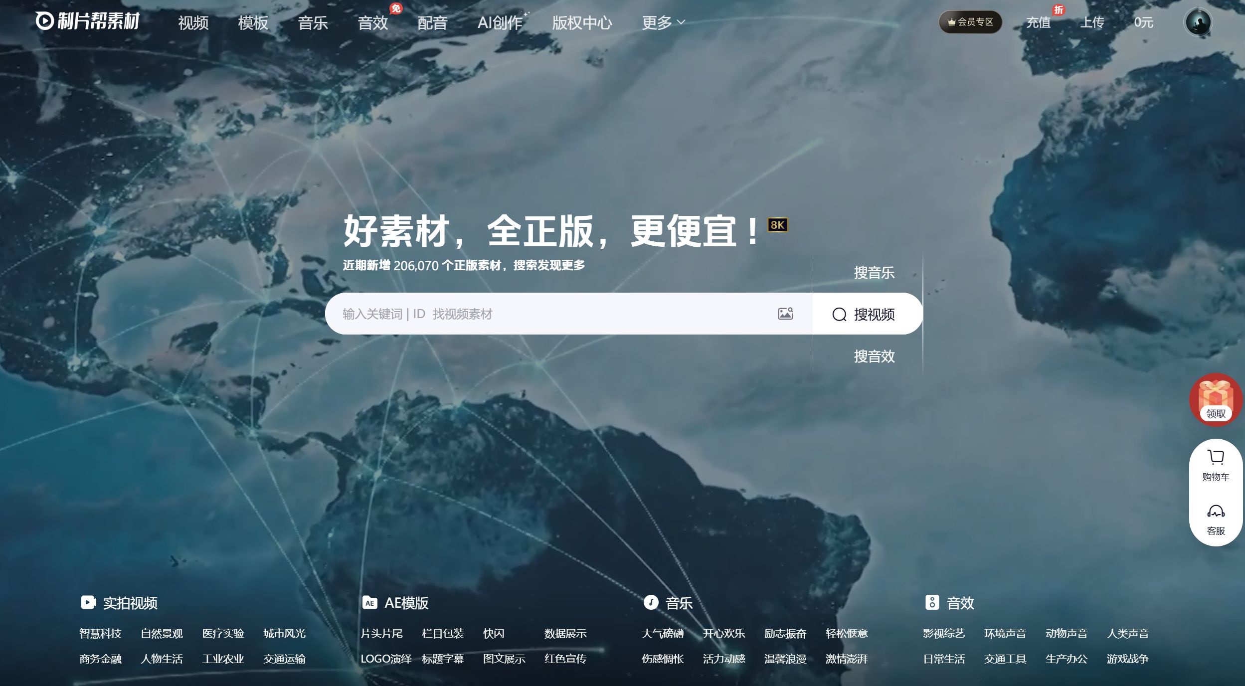 制片帮素材网是国内综合类素材服务的佼佼者,汇聚海量视频、图片、创意模板等资源。其「智能素材库」借助 AI 技术实现精准分类,支持按场景、风格、分辨率等多维度搜索,让创作者找素材的效率提升 60%。「动态素材适配系统」可根据不同创作场景自动调整素材参数,完美适配短视频、广告片等快节奏创作需求。平台版权保障体系完善,采用先进技术进行素材确权,创作者在平台上的原创素材还能获得最高 80% 的分成收益,是自媒体创作者、广告策划人员的理想选择。