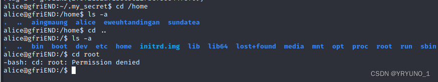 找到root所在路径,并且尝试进入,显示没有访问权限