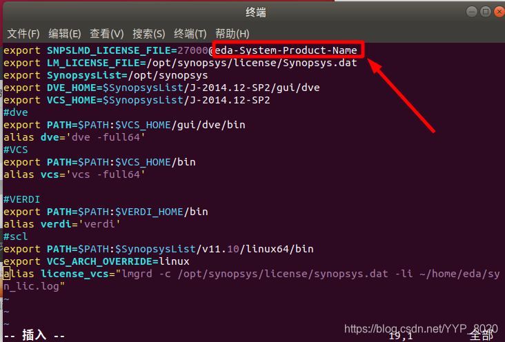 回到Ubuntu系统,把生成的Synopsys.dat文件放在/opt/synopsys/license下(没license文件夹新建一个)
