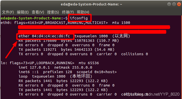 终端输入:ifconfig
