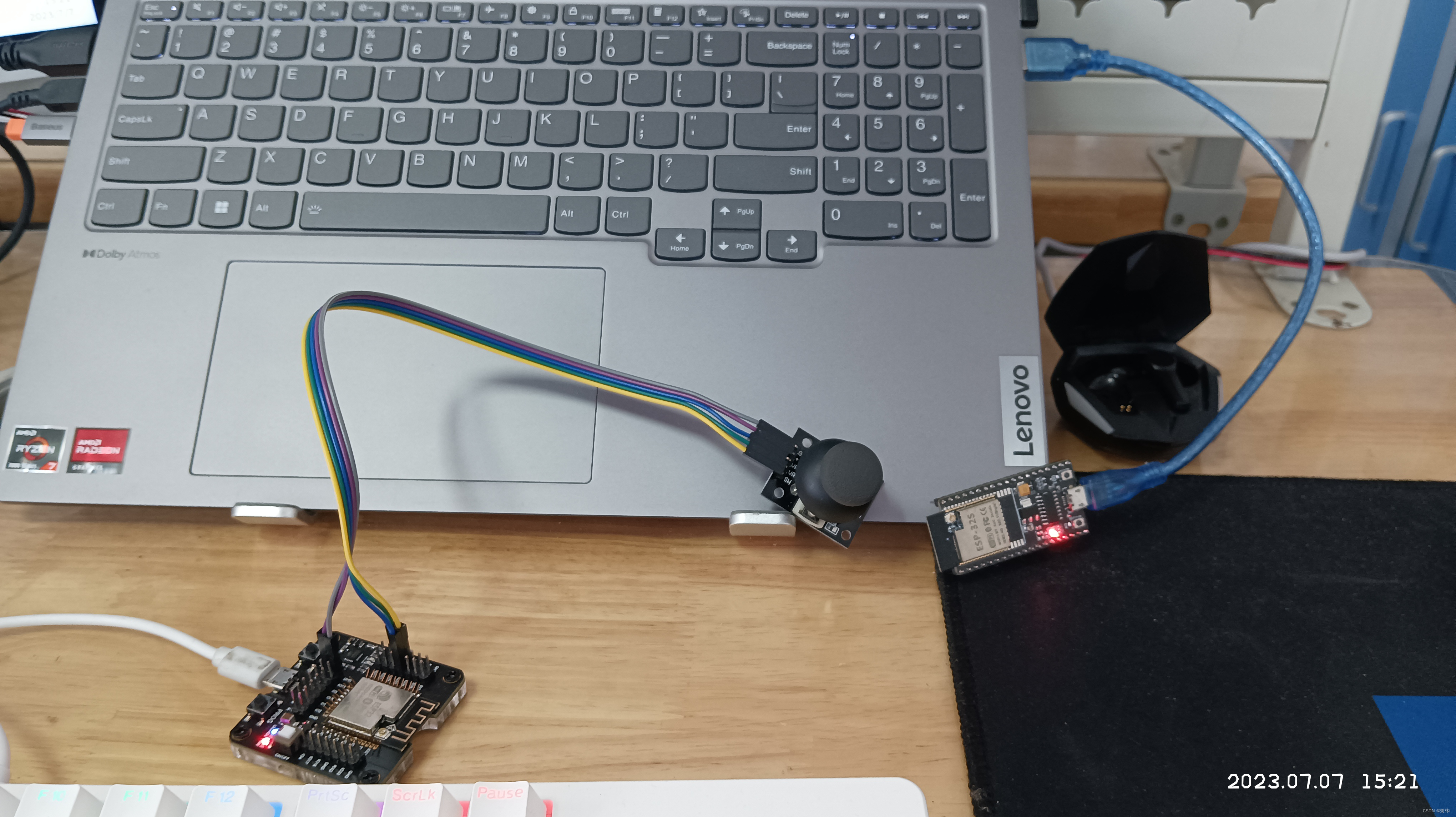 双ESP32高频传输XY摇杆数据 - WIFI模块UDP协议 ESP32 使用WIFI UDP协议通信ESP32主: 读取XY摇杆数值并通过UDP发送到从机, 每50毫秒发一次ESP32从: 接收到从机数据直接打印到串口实际效果左边ESP32主机连接XY摇杆, 并发送UDP数据右边ESP32从机, 只进行接收并连接到电脑串口打印