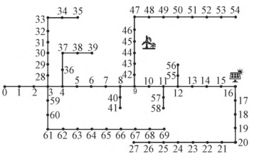 - 节点布局:69个节点(编号0–69),含关键标记节点(如56、57可能为新能源接入点)。